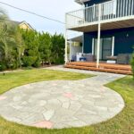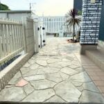 ローラーストーンを使用したアプローチと庭空間の施工事例です。