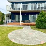 庭の中心には円形のスペースを設け、ローラーストーンで石貼り風のデザインを施しました。
