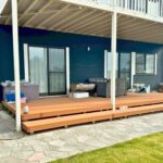 テラス部分には広々としたウッドデッキを設置し、屋根付きのため天候を気にせずくつろげるアウトドア空間として活用できます。